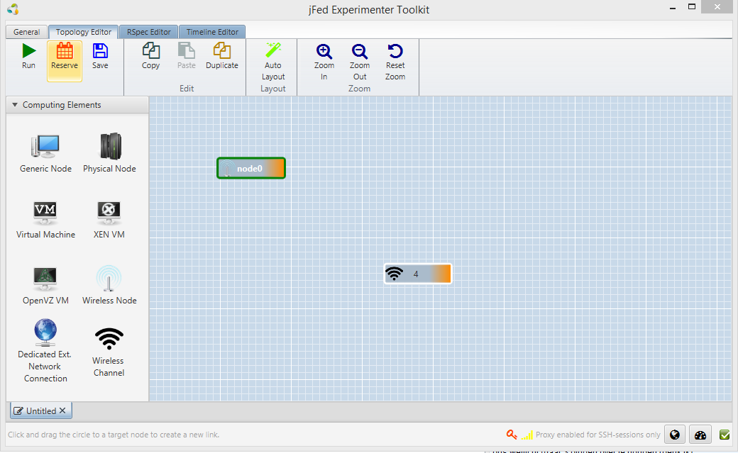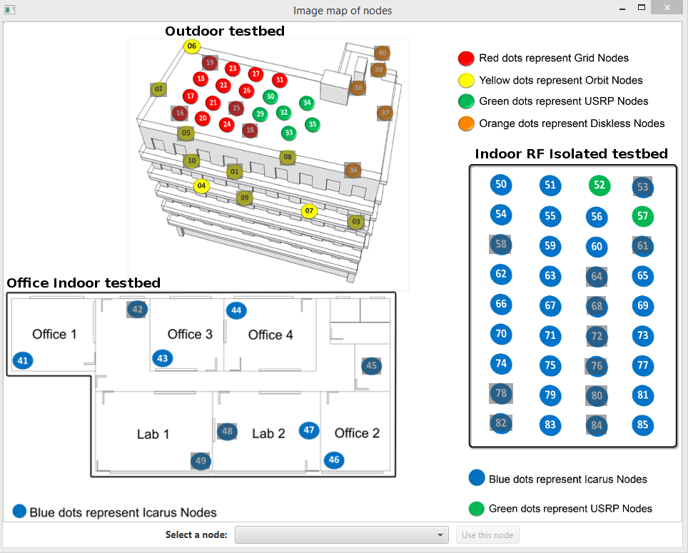 By double clicking the wireless node icon, you can chose the testbed and a specific node.